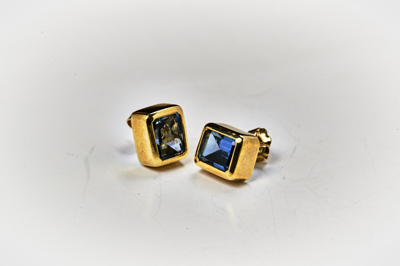 Gold Earrings K18 with Blue Topaz