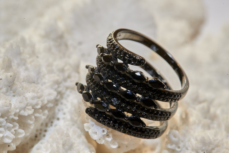 Silver plated ring 925° with black quartz