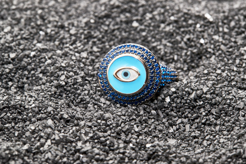 Silver plated ring 925° with quartz, mother of pearl and enamel
